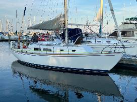 Named "Margaritaville" the classic 33 foot Pearson sailboat was built in 1971. It underwent a 10 year restoration by the owners culminating in new decks, power, and paint to look brand new. The owners use the boat to sail much of Lake Michigan each summer, from north of Mackinac Island to harbors throughout Michigan and Wisconsin.