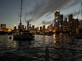 Go on a 5 hour Lake Michigan cruise on a personal sailboat. This evening, hosted by Ann and Greg Gills, is good for up to four people. It starts with an early evening sail, dinner at the Yacht Club, then a cruise from Monroe Harbor to see fireworks (Wednesday or Saturday nights) with wine or champagne.