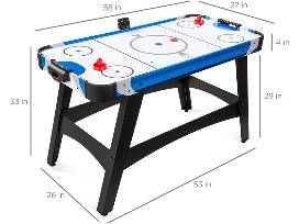 This Best Choice Products Air Hockey Table will add endless hours of family fun!!! It's a 58in Mid-Size Arcade Style Air Hockey Table with 2 Pucks, 2 Pushers, Digital LED Score Board, Powerful 12V Motor and a Carrying Bag.