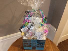 Tea basket pictured includes a Tea Lula mug, 3 teas (Cinnamon, Cherry-picked Oolong and Josie Applejack), sugar stir and a honey bear.