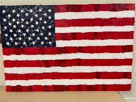 A patriotic work of art! Enjoy this sensational American flag created by our sensational sixth graders. Each student had a hand in making this paper mache flag. It is sure to add joy to your home