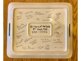 Chicago Proud! SMOW's electric eighth graders serve up a beautiful Chicago platter. Each student helped to create this piece of art with paint and their signature. It is sure to be a wonderful addition to any table and a special keepsake for many years to come.