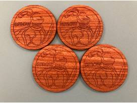 4 carved SMOW coasters.