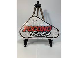 Pocono Raceway wooden sign autographed by Jimmie Johnson BUT WAIT, THERE'S MORE! This wooden sign comes with a $100 gift card to purchase either NASCAR tickets or merchandise!