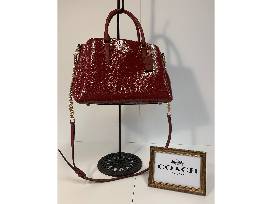 1Coach Embossed Signature Print Deep Red Leather Sage Carryall (F31486)