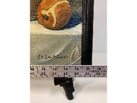 1Framed oil on canvas of Mums with Fruit. Signed at the bottom right by local artist Jill Sandt-Swersie from Scotrun, PA.