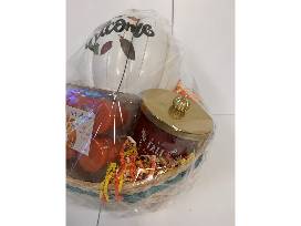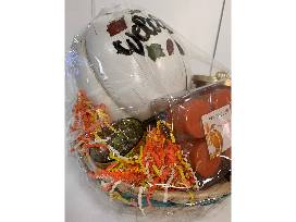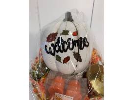 White "Welcome" Pumpkin with Fall Leaves, About 8" x 8"