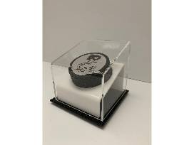 The Philadelphia Flyers deluxe hockey puck display case. Case is made of 1/8th thick acrylic and officially licensed by the National Hockey League and features a clear acrylic removable lid and a black acrylic base. Perfect for displaying your collectible puck. Measures 4 1/2" x 4 1/8" x 4".