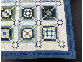 Stay warm this winter with a gorgeous, hand-made quilt. The soft blues and greens of this exquisite quilt will be sure to enhance any room. The quilt measures 90" by 90". Donated by Janet Patterson, Fair Market Value: $500
