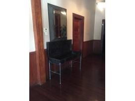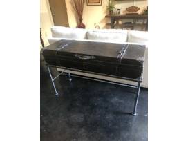 Black metal trunk side table with inside storage