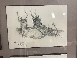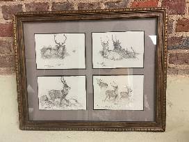Set of 4 wildlife sketches in one frame. Sketches feature deer.