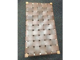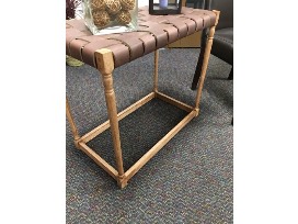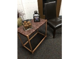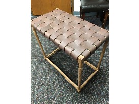 This is a 1'x2' Cross Hatch Leather Top Bench. It stands 2 feet tall and is hand made with oak wood.