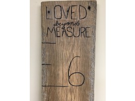 Made from hundred year old barnwood, this growth ruler is perfect to watch your children or grandchildren grow. You can use a sharpie to mark on the board. It is a great reminder that we are loved beyond measure.