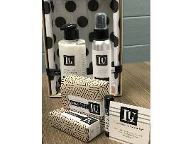Lavender Hydrating Lotion, Hydrating Body Mist, 2 Bars of Soap and Lip Moisturizer.