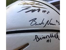 This basketball is signed by the 2021 Purdue Boilermaker Boys Basketball Team and comes in a display case to keep it protected.