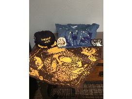 This package is donated by Adam Johnson, BCS alumni. It includes two stickers, a hat, and a large shirt.