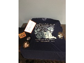 This package is donated by Adam Johnson, BCS alumni. It includes two stickers, a hat, and a large shirt.