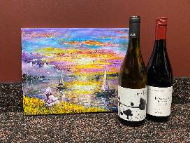 This package is as classy as it gets - impress all your friends with your new original artwork - a painting by artist James Mull - and while sipping a glass (or 2) of European wine.