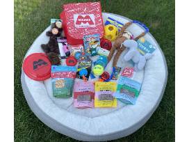 You'll be your pup's favorite if you bring this home. A fun basket of goodies from Mounds Pet Good Warehouse. This basket includes: