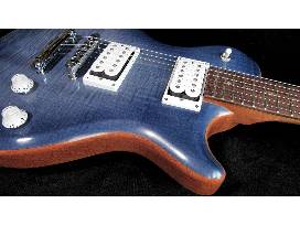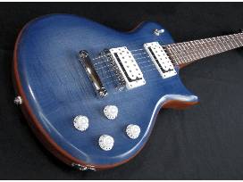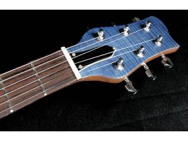 - Flame maple headstock veneer dyed to match the faded denim blue top.