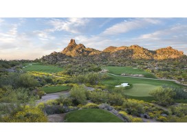 Estancia, Golf Digest's Best New Private Course of 1996 was Tom Fazio's initial entry into the Scottsdale scene. Positioned beneath the north slopes of Pinnacle Peak and routed to provide a variety of uphill and downhill shots and a change of direction on almost every hole, Estancia is an easterner's version of rock-and-cactus architecture, with wide turf corridors, few desert carries and greens wilder than most. Former Fazio design associate Kevin Sutherland (no relation to the PGA Tour player of the same name) has made slight design adjustments in recent years.