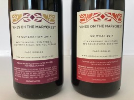 A 2017 Blend of Zinfendale, Syrah, Petite Sirah and Mourvedre and a 2017 Blend of Cabernet Sauvignon, Sangiovese and Syrah.