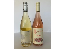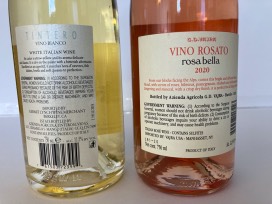 A 2019 Blend of Favorita, Arneis, Chardonnay & Mascato and a 2020 Rosa Bella blend of Nebbiolo and Basrbera.