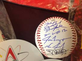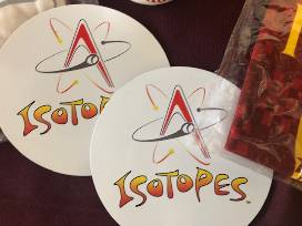 Collectors item: May 2021 Team-signed baseball with letter of authentication; Adult Large Isotopes T-shirt, Youth L Isotopes "Quiddatch" commemorative jersey, 4 Isotopes magnets, and a red lunch box. Donated by LAPS Foundation.