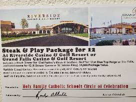 Choose either of Elite Casino's golf resorts - Riverside Casino & Golf Resort or Grand Falls Casino & Golf Resort. Enjoy golf for 12 at either Blue Top Ridge or The Falls, plus a steak dinner at Ruthie's Steak & Seafood. Overnight accommodations are also included - six deluxe queen or 12 deluxe king. (Some blackout restrictions apply, see certificate for details. Expires 11-1-2023.)