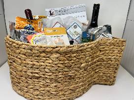 Cute fish-shaped wicker basket full of what cats love (& something for you too!):