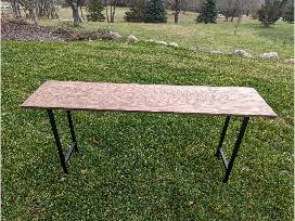 Grab this beautiful one-of-a-kind, hand-crafted, Ash sofa table with metal legs made by Rockford dad Mike Thomas.