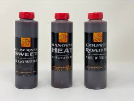 - Their famous barbecue sauces: Crow River Sweet (mild & marvelous); County Road 19 (middle of the road); and Hanover Heat (as hot as it gets up here)