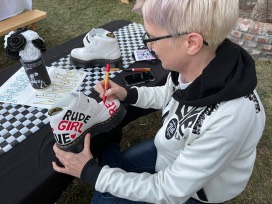 Hey Rude boys and girls! Nan Coffey will be custom painting these Dr. Marten boots LIVE at Musack 2021! Be the star of your skanking circle with these Women's Size 8 with heart buckles and thick soles.