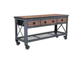This 48 inch industrial metal and wood work bench is a welcome addition to any workshop or garage. The solid wood 48" x 19" work top provides plenty of room for your projects. Cubbies on both sides of the center drawer are large enough for power hand tools. The heavy duty casters allow mobility and two locking casters secure the work bench in place,