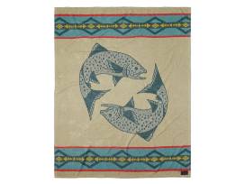 Our lightweight Trout Blanket is ideal for knocking off the chill around the campfire or on the beach. Built with brushed, ultra-soft 100% Portuguese cotton in a jacquard weave for crisp, permanent graphics. Since it's machine washable, it can be used anywhere without worry. Exclusive Filson-designed graphics. Limited-edition.