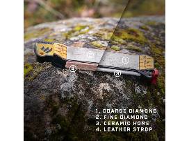 The Guided Field Sharpener is a complete sharpening solution for field, home or shop use. It is the first angle guided, 5 stage sharpening solution designed for sportsmen who need a complete, robust and compact field sharpening solution.