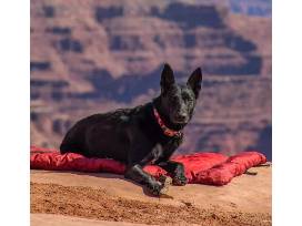 You like to kick back in the Great Outdoors, right? With the Kurgo Loft Wander Dog Bed, your dog can stretch out and relax right next to you. The top is made of Microtomic ripstop material for seasons of punishing use. Inside, 140-gram polytech fill adds bedlike cushioning lets your friend rest his tired bones. The bottom is made of Rufftex , a rugged, nonslip, waterproof material that'll keep the ground's dampness at bay. The design even features a hidden zip pocket for small dog-related essentials. When you're ready to go, the Kurgo Loft Wander outdoor dog bed rolls up into a bundle, and a built-in handle delivers easy portability. 36"L x 38"W x 3"H. Machine wash in gentle cycle with cold water. Hang to dry. Manufacturer's lifetime guarantee.