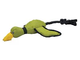The Hyper Pet Flying Duck Slingshot Dog Toy will be a hit with any dog that likes to chase. The thumb released slingshot has a bungee neck that launches the toy up to 100 feet. The toy includes a squeaker for added excitement. The Flying Duck even floats in water for summertime fun. Made of durable ballistic material, the Flying Duck meets or exceeds child toy safety standards.
