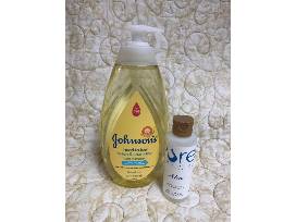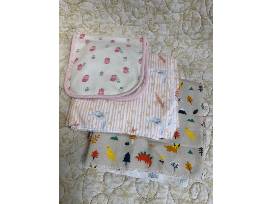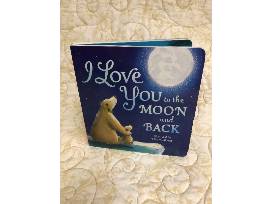 This gift includes 1 beautiful quilted blanket, 2 receiving blankets, 1 burp cloth, a cuddly teddy bear, I Love You to the Moon and Back board book, soft whale toy with ring, 4 size 6-12 month t-shirts (in pink, blue, white, and ecru), Johnson's baby head-to-toe wash and pure formula hand sanitizer, all packaged in a versatile turquoise plastic bin.