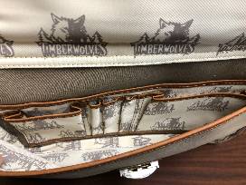 This fine piece of Minnesota Timberwolves Memorabilia would make a great gift for any working-class fan! With three large compartments and extra pockets for keeping smaller essentials organized, there's room for both practicality and style. The canvas and leather exterior sports a subtle, yet stylish emblem while the lining is attractively outfitted in a more pronounced Timberwolves logo print! Make it your own or gift it to an avid fan on who's off to college or entering the workforce!