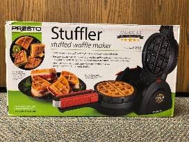 Presto's "Stuffler" stuffed waffle maker cooks Belgian style waffles with your favorite toppings baked inside.