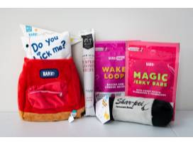- A "Bark 2 School" Bark Box containing great treats and toys for your pet: doggy back pack, two chew toys, and three edible treats.