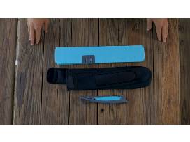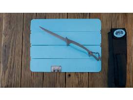 Titanium Coated Salt-Tough Blade. 7" or 8.5" size options. Non-Slip Raised Rib Rubber Grip, Stowaway Carabiner, Patents pending -