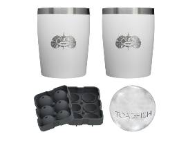 - Toadfish Rocks Tumbler 2-pack with Ice Ball Tray - Just add your favorite cocktail to the Toadfish Rocks tumbler and keep your drink accident-free and always chilled. Includes built-in graduated measurements for the perfect pour and a shatter-proof lid with a removable slider. This is your new go-to companion from bourbon to coffee. The Toadfish Wine Tumblers hold on when others can't.