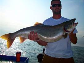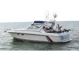 The Reel Em In is a 33' Trojan International - one of the largest charter boats on Lake Ontario and capable of handling just about any sea condition! It is fully equipped for maximum safety and comfort. It has a 13' beam for stability, twin engines, and more than enough fishing room for groups of up to 6 anglers. The cabin features a full galley with hot water, dinette area, plush seating, a master stateroom, and private bath with shower.