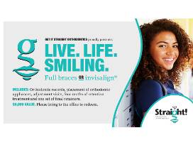 Provided by Get It Straight Orthodontics, this certificate is good for a FULL SET of braces or Invisalign! GOOD FOR ADULTS OR CHILDREN!