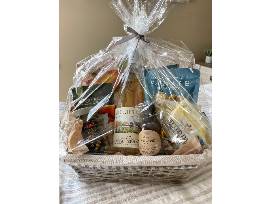 Enjoy a lovely gift basket with a bottle of wine and fine artisanal snacks, courtesy of Innovision Advertising!