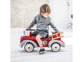 This fire-truck ride-on is equipped with real functional steering. Baby will quickly find their feet with this new car and the rubber tyres will help to keep them stable and move quietly around the house. The old-style fire trucks of the 50s inspire this ride-on. With its red chassis and its accessories, baby will be able to pretend they're a real fire fighter and imagine exciting stories. The bell is functional. Baby's imagination will be fired up as they set off on courageous missions aboard their truck!