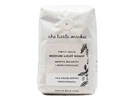 Come indulge and wrap yourself in a plush Grey blanket with white pom poms, cozy up with 2 Ceramic Mugs (with Grey Stripes) while sipping on our Whole Bean Light Roast coffee. Complete and wrapped already for under the tree in "The Little Market" Shopping Tote.