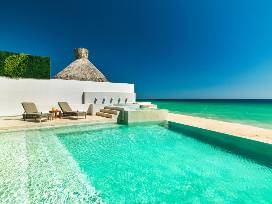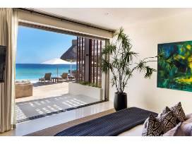 With 5 bedrooms, 5 bathrooms, and over 6,000 square feet on one level, Villa Serena is the perfect beach escape. A contemporary beachfront villa located in a gated community between San Jose and Cabo, Villa Serena features breathtaking ocean views and is steps to a large stretch of pristine beach. This beachfront development is flanked by 5-star resorts that provide access to restaurants, spas, and an opportunity to purchase day passes for full access to resort pools/gym/amenities. The open-concept living and dining rooms offer sensational views of the ocean and provide several areas for groups to relax, eat, and enjoy endless views of the Sea of Cortez. Villa Serena's gourmet kitchen features state-of-the-art appliances, a kitchen island, breakfast bar, and water filtration system. The Master Bedroom features incredible ocean views along with an en-suite that includes a luxurious jacuzzi tub. Each of the other four bedrooms provide comfortable beds with quality linens as well as full en-suite bathrooms.